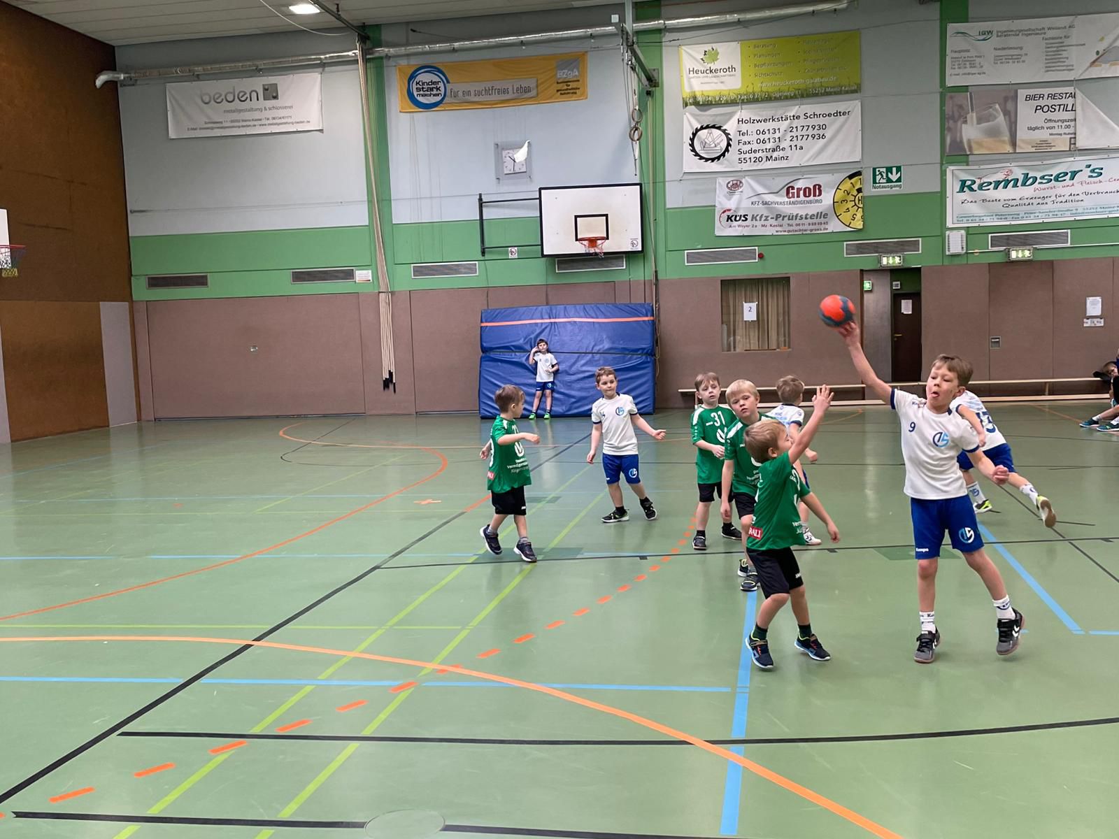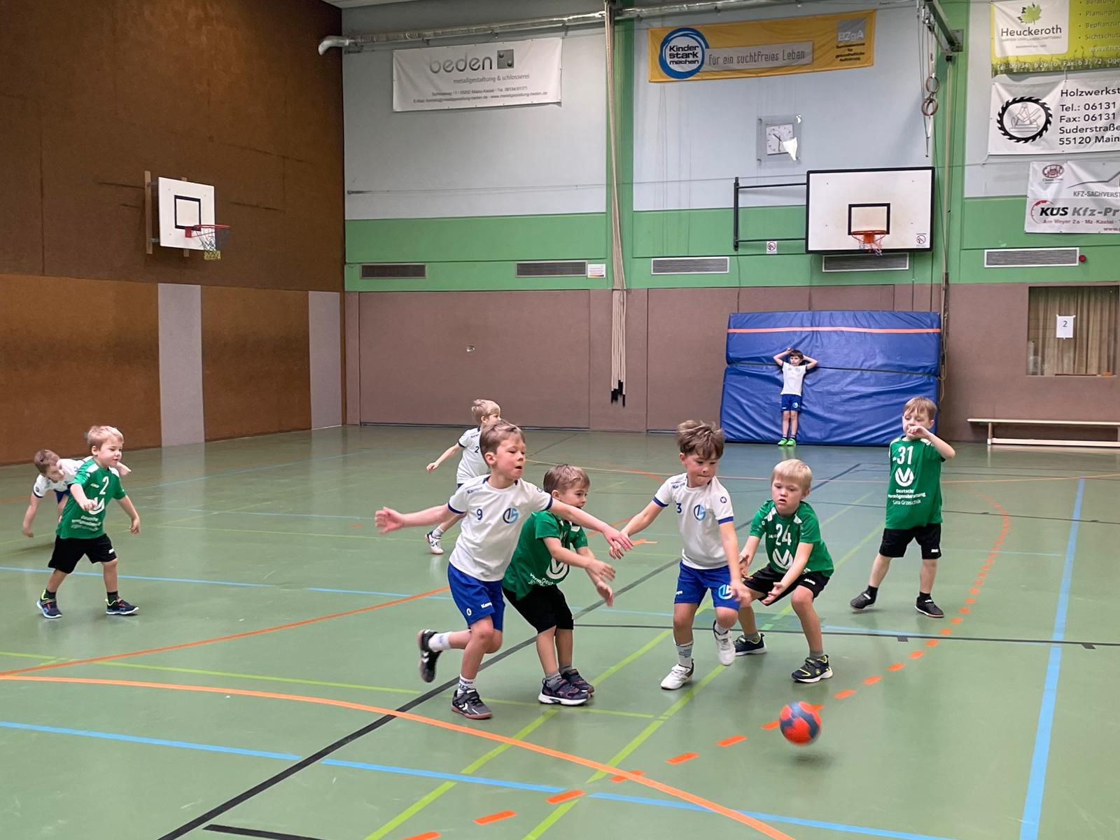 Am vergangenen Wochenende nahm unsere G-Jugend mit zehn Spieler:innen am Spielefest der TG Kastel teil. Auf dem Plan standen vier Spiele à 15 Minuten, wobei wir drei Spiele direkt hintereinander absolvieren mussten – eine echte Herausforderung für die jungen Spieler:innen, die sie mit Bravour gemeistert haben.