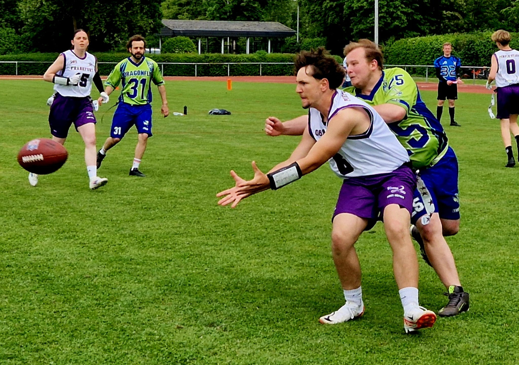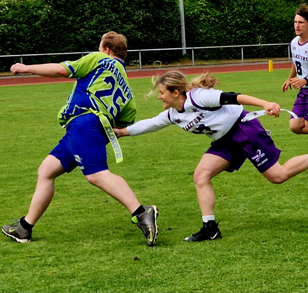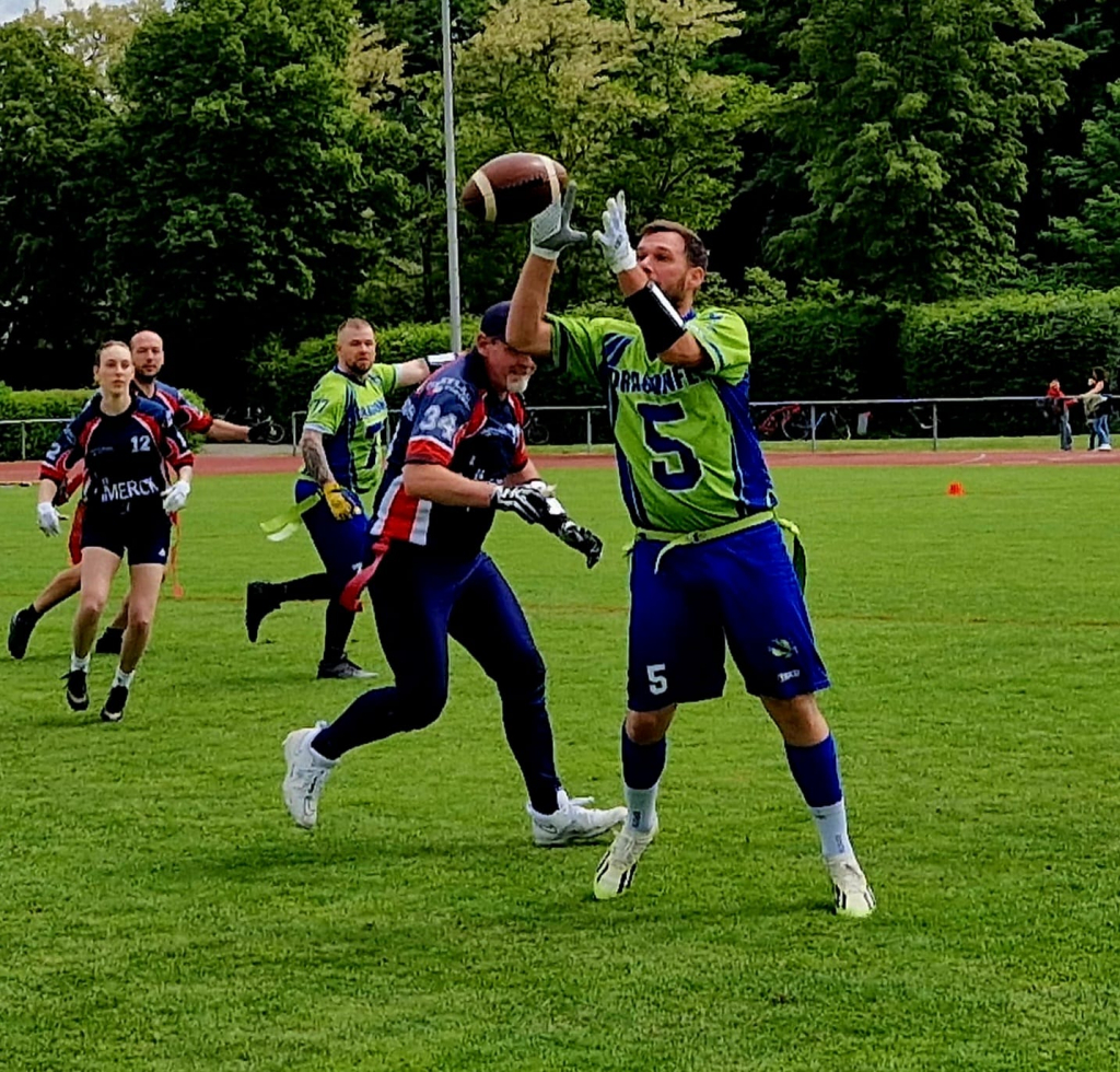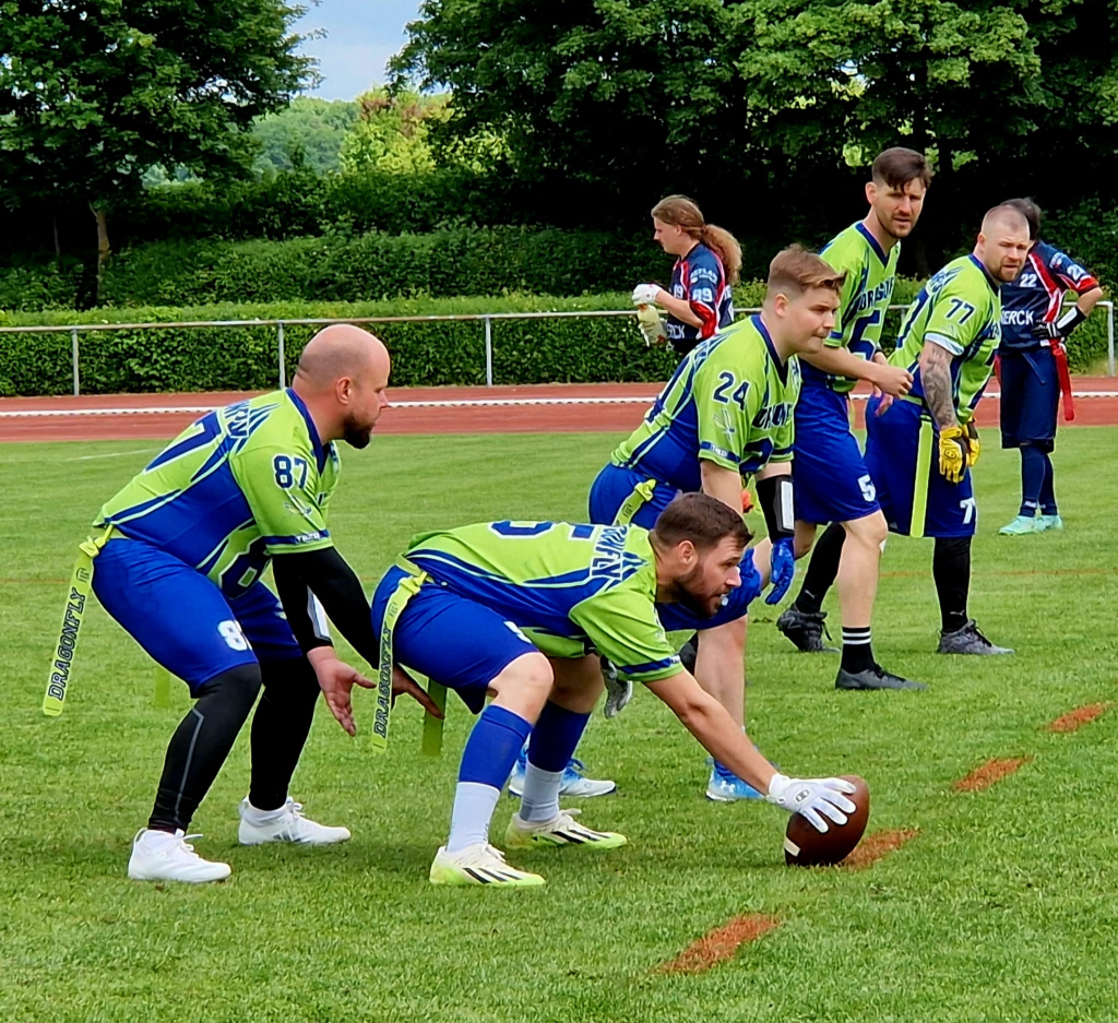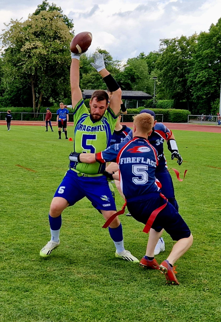 Im April 2025 wurde die neue Abteilung „Flag Football“ in der TG eröffnet und die Mannschaft „Wiesbaden Dragonfly“, welche bereits seit September 2018 besteht, herzlichst aufgenommen. Aktuell besteht das Team aus 14 Mitgliedern, aus unterschiedlichen Altersgruppen zwischen 25 und 50 Jahren. Wir alle gehen mit Leidenschaft und Freude unserem Hobby nach und freuen uns auf jeden, der diese mit uns teilt! Da wir ein Team bestehend aus Erwachsenen sind, nehmen wir derzeit nur neue Mitglieder/innen ab 17 Jahren bei uns auf. Abgesehen davon ist jeder willkommen, selbst wenn die Sportart vorher noch nicht ausgeübt wurde.